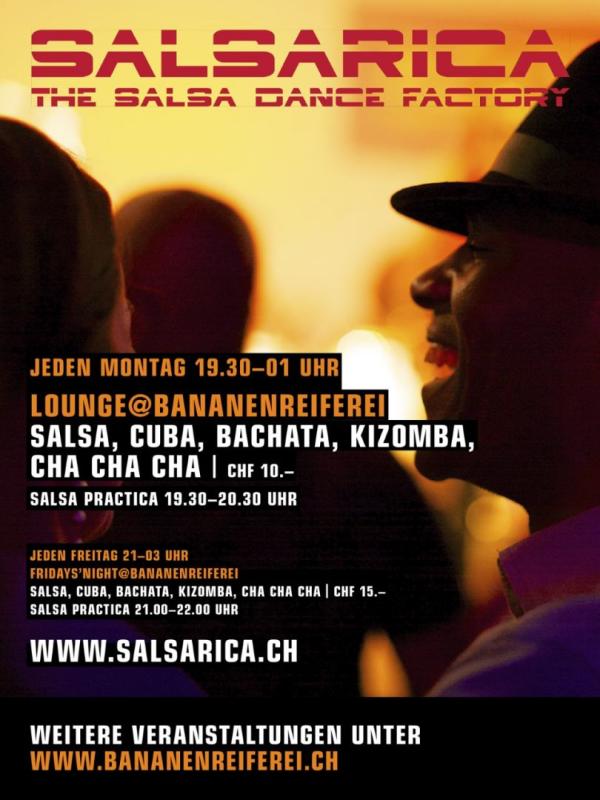 Salsa, Bachata, Cha-Cha-Cha, Son - das sind die richtigen Rhythmen, für einen schwungvollen Start in eine neue Woche. Komm am Montag zum Salsa-Tanzabend der SalsaRica in die Bananenreiferei. Bis 01.00 Uhr in die Nacht könnt ihr voller Freude das Tanzbein schwingen.